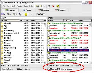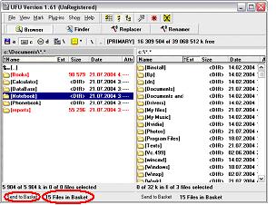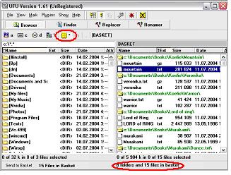 2) At the left lower corner of the window there is button SEND TO BASKET. Press it. After this In basket will appear links to files. At the foot you can see the number of the files in Basket. And the selected directory (directories) will become black again.