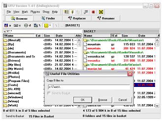 Useful File Utilities1. How to copy files from different directories and subdirectories without copying the subdirectories themselves.If you often work with many files and documents and you need to copy them from different directories and subdirectories without copying the subdirectories themselves, it is very convenient for you to use BASKET. 1) At the left upper corner of the window you can see the button BROWSER. First, you should press this button and select the main directory (or directories) from which you need to copy the files. You can do it using right button of your mouse or pressing direction buttons and SPACE. The selected directories will be printed in red color.